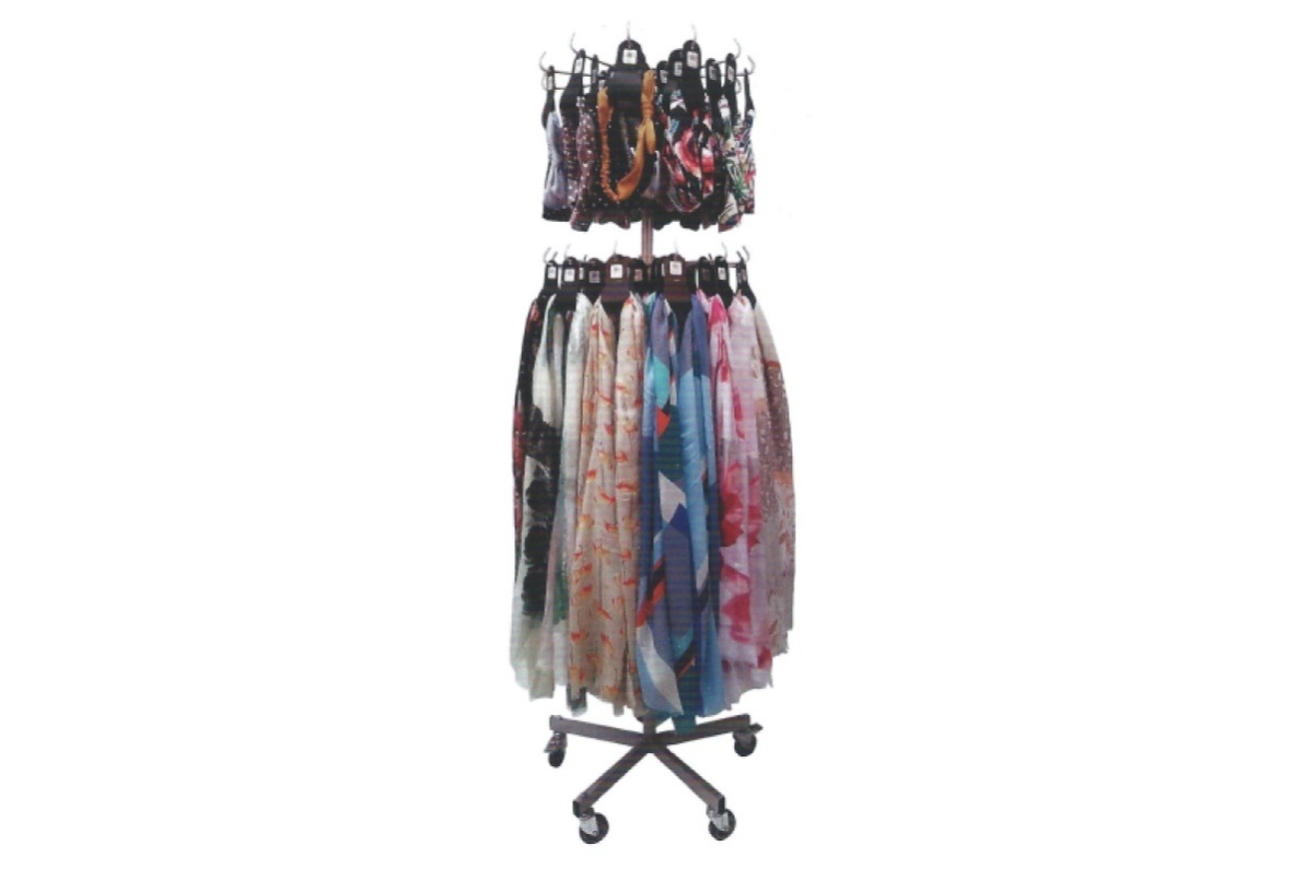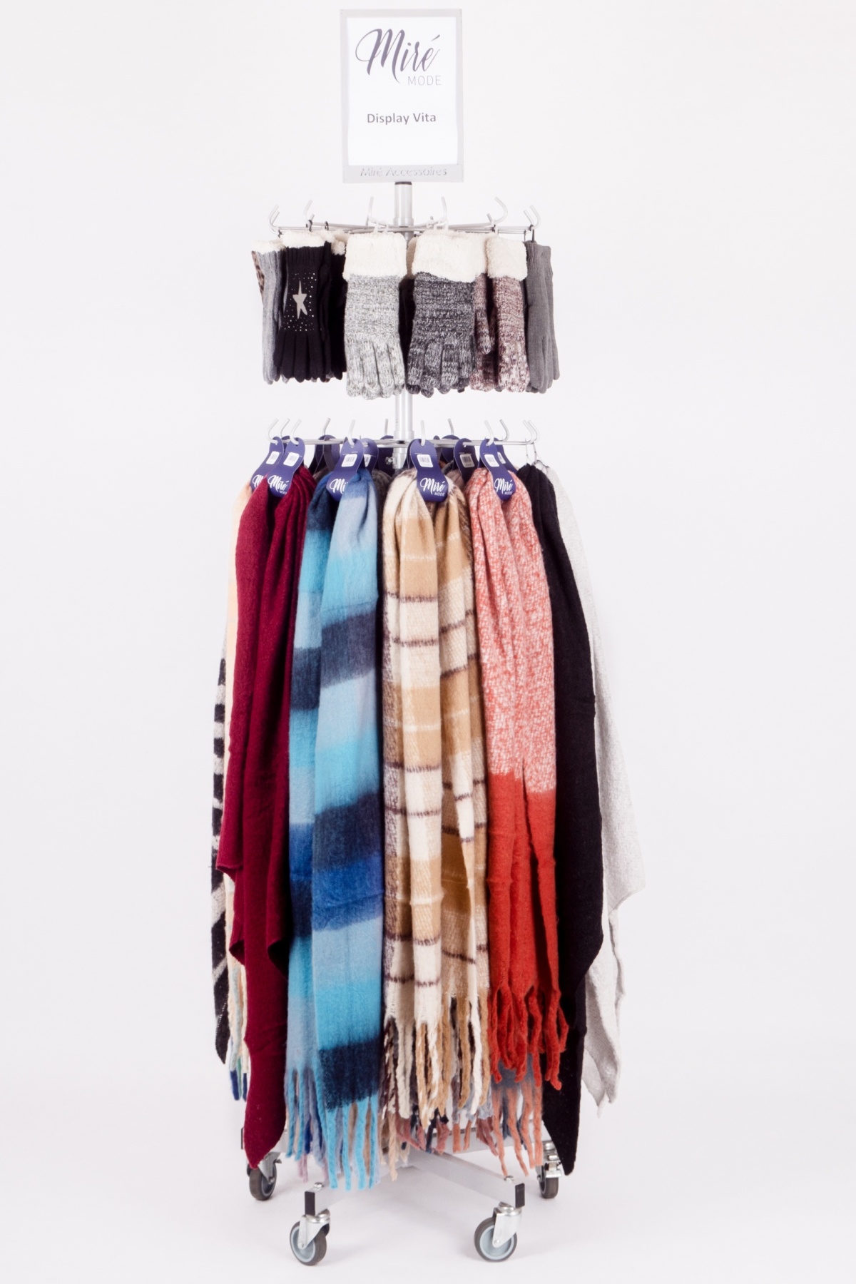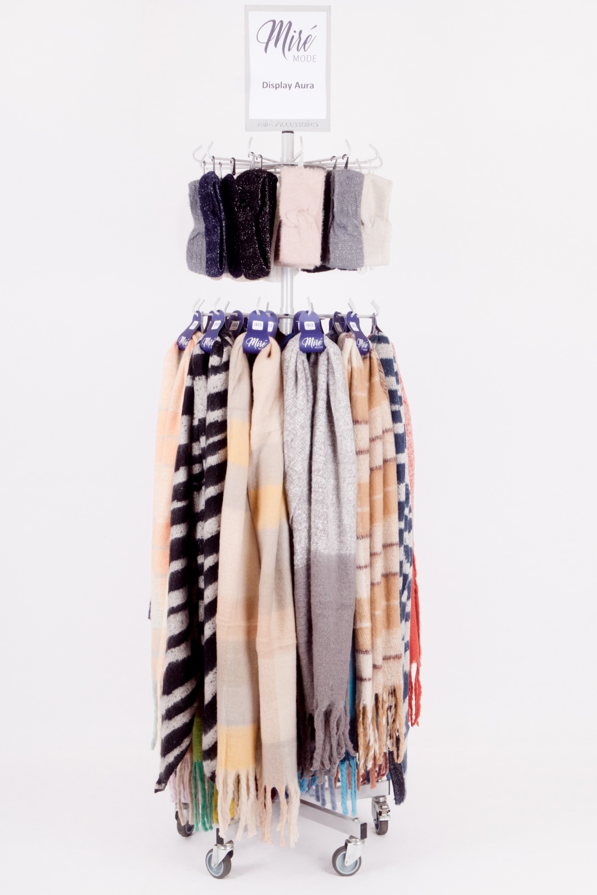Wij bieden verschillende combinaties met sjaals doordat wij het display zo hebben ontworpen dat u de bovenste ring kunt voorzien van extra producten. Hierdoor genereerd u meer verkoop terwijl u geen extra verkoopmeters kwijt bent.