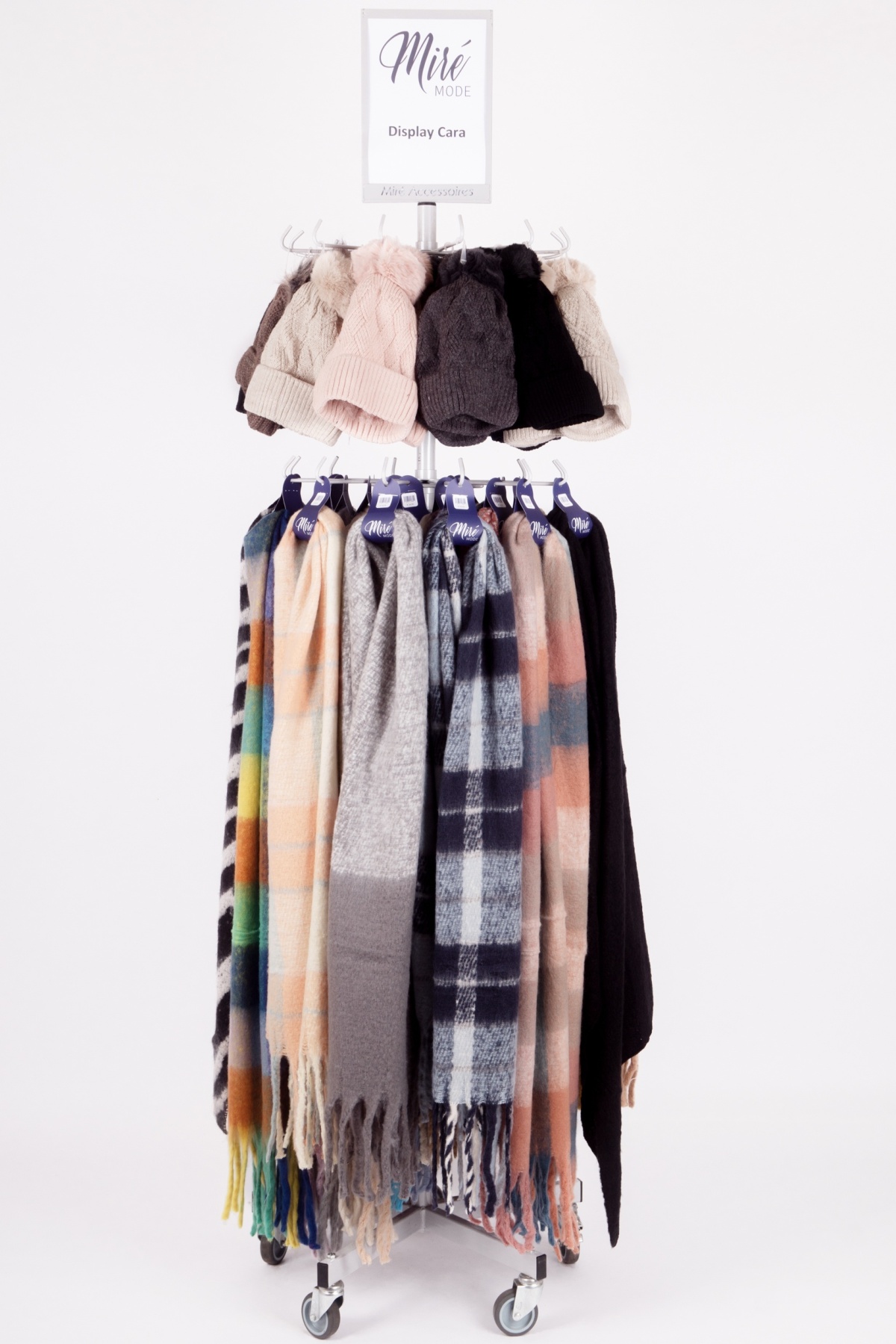 Mutsen zijn leuk te combineren met een warme dikke sjaal. Daarom is deze combinatie display commercieel gezien een topper.